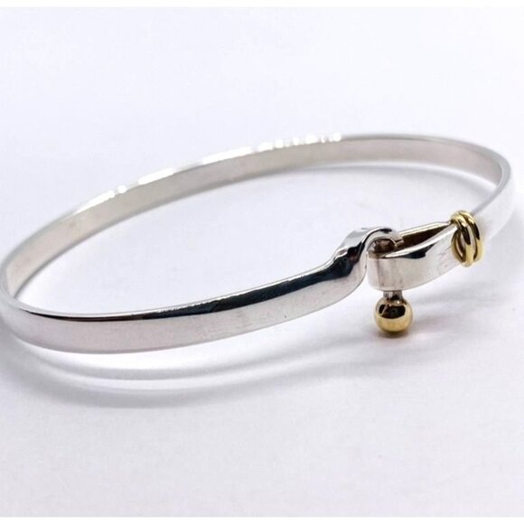 Tiffany & Co Vintage 925 750 18k Hook Bangle Bracelet 7"