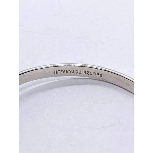 Tiffany & Co Vintage 925 750 18k Hook Bangle Bracelet 7" Bracelet is 7" inside circumference Widest point is 12mm 12.1 Grams total weight Has been cleaned and polished