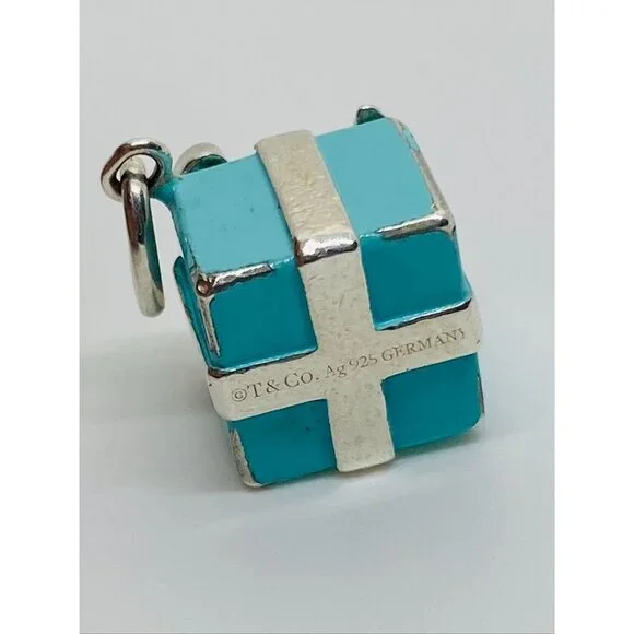 Tiffany & Co Sterling Silver 925 Enamel Gift Box Charm Pendant Sterling Silver 925Hallmarked Ag 925 Germany Please see all pictures, has some wear and some of the enamel is gone