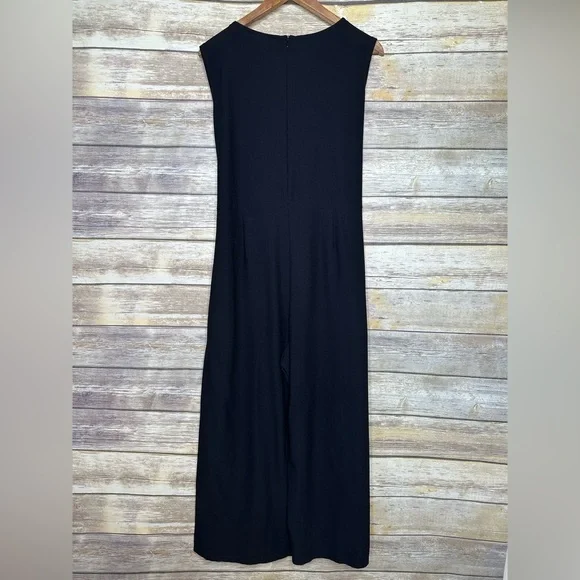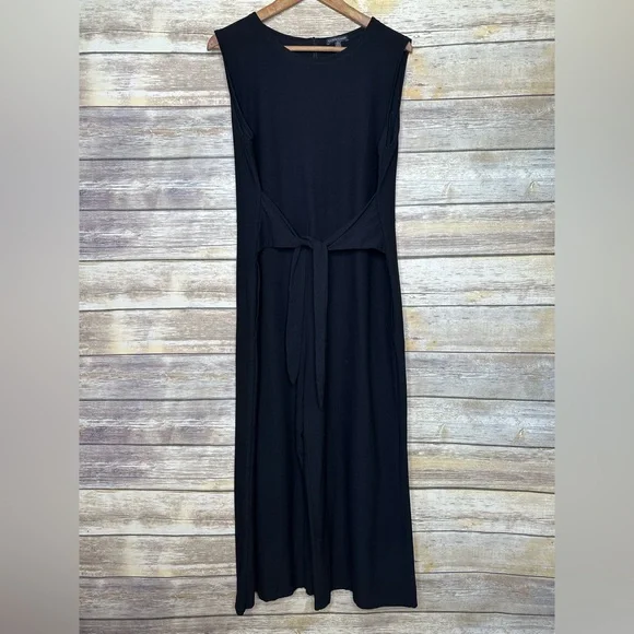 Eileen Fisher Washable Stretch Crepe Jumpsuit Front Tie Wide Leg Black Medium