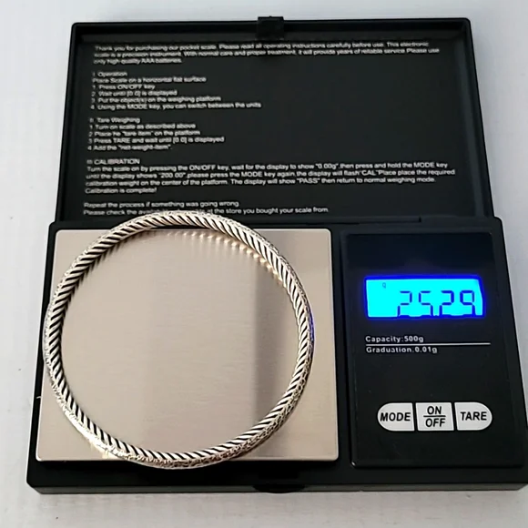Sterling SilverMarks: 925, Designer SignatureTotal Item Weight (g): 25.2Inside Circumference: 7.75"Width: 0.25"Very good pre-owned conditionGeneric velvet pouch