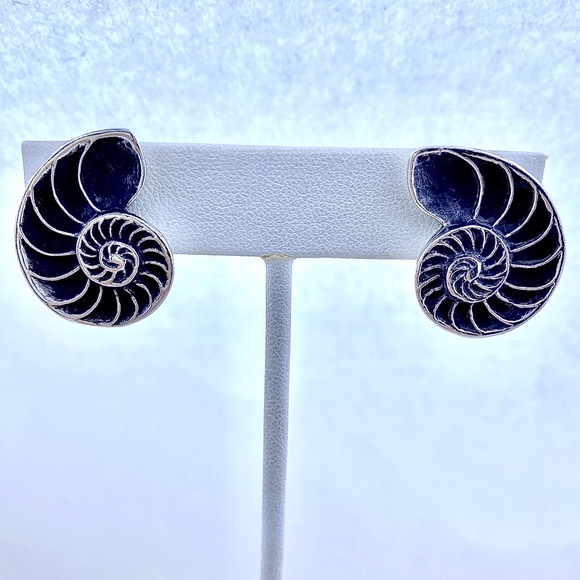 For your consideration is a very scarce pair of Retired James Avery sterling silver NAUTILUS earrings. They are clips and in very good condition. The Approx Sizes of these beauties are: H - 1.0", W - 3/4". Please see pictures for further details. Also, visit my closet for more unique items. Thanks for stopping by!