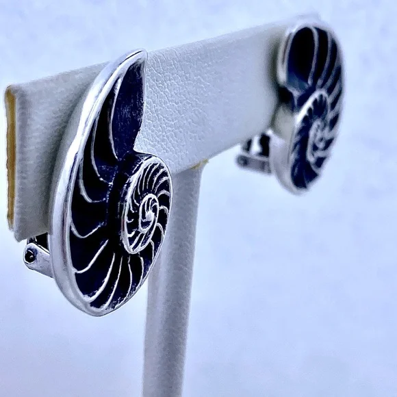 Scarce James Avery Retired Sterling NAUTILUS Clip Earrings