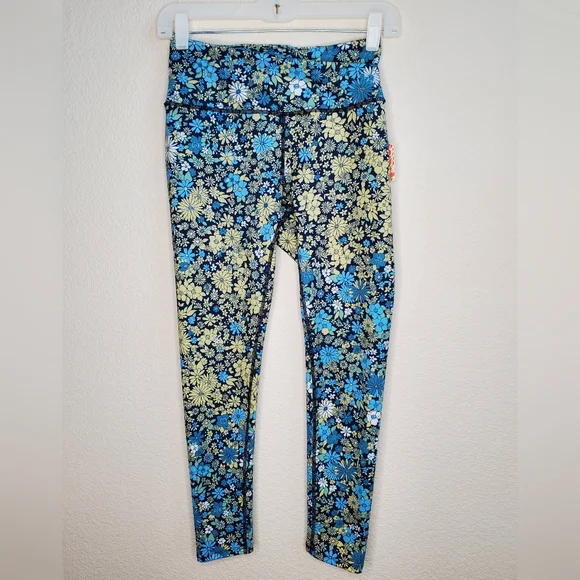 Midnight Navy Combo flowery jogger legging. Key pocket in back. Cross-over front.