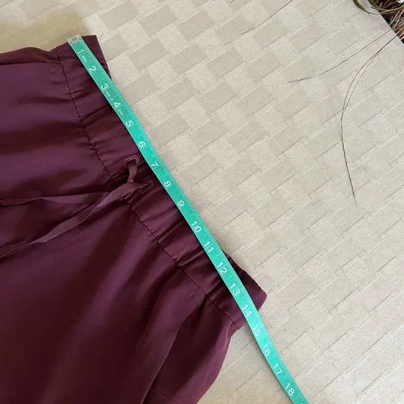 From the ready to wear collection, quick drying with sleek drape, wrinkle free, elastic waist with adjustable drawcord, slip on pockets with interior pocket Measurements in pictures In excellent preowned condition Color is Burgundy butis only giving me Red as the closest color option in listing