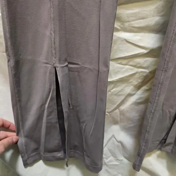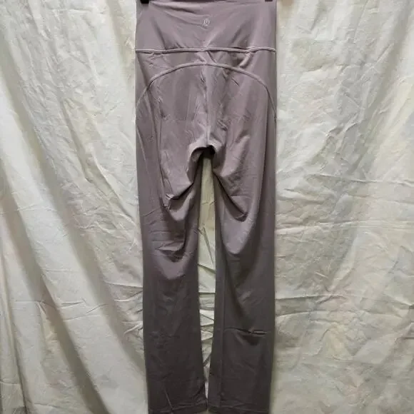 Lululemon In The Groove Flare Pant in Violet Verbena size 4. Waistband pocket, super high rise, split hem. Nulu fabric keeps you cool, buttery soft.Waist 23"Rise 11"Inseam 31"Buttery soft and stretchy fabric.There are 2 darker lines near the waist, no pilling in crotch.