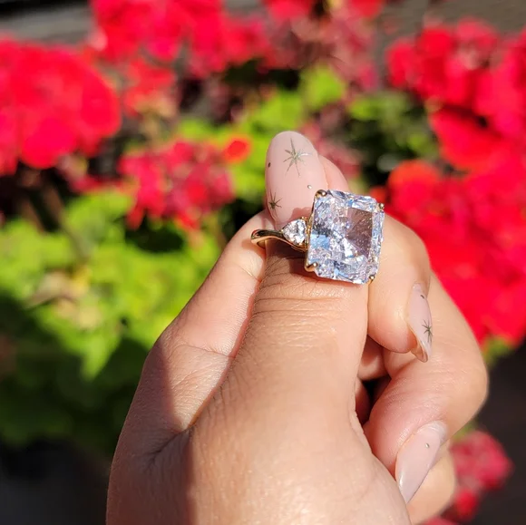 large cz statement ringsolid 10kt yellow gold clear triangle cz on both sides size 8.25, free resize 5.9 gramspreownedg5
