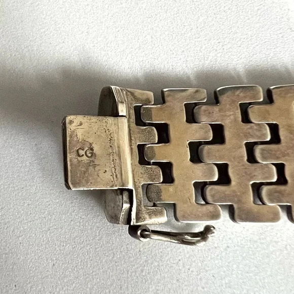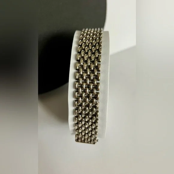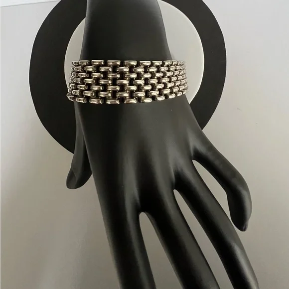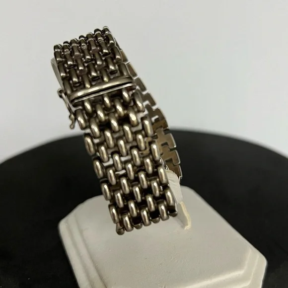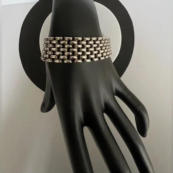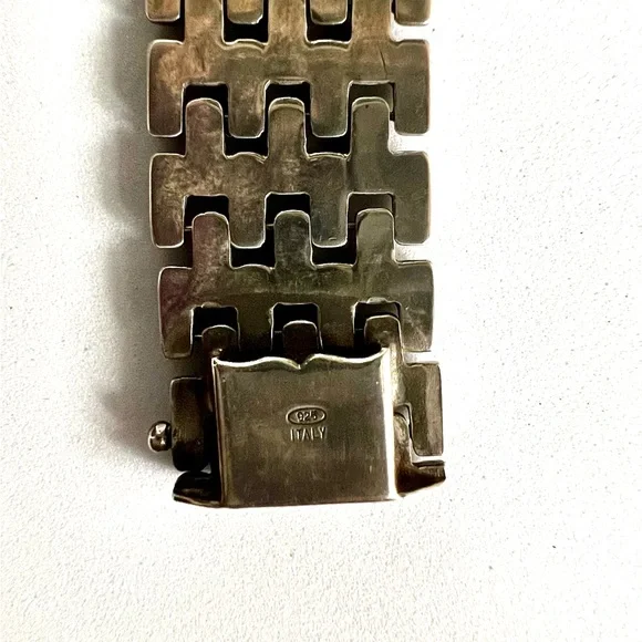 • Vintage Sterling Panther Link Bracelet•Classic and Comfortable Strap Design• Hallmarked 925 Italy CG• Dimensions: 7 3/4” L x 3/4” W