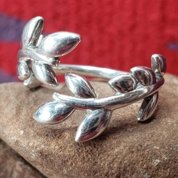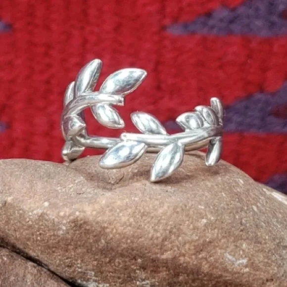 Tiffany & Co Paloma Picasso AG 925 Sterling Silver Olive Leaf Bypass Ring, Sz 7