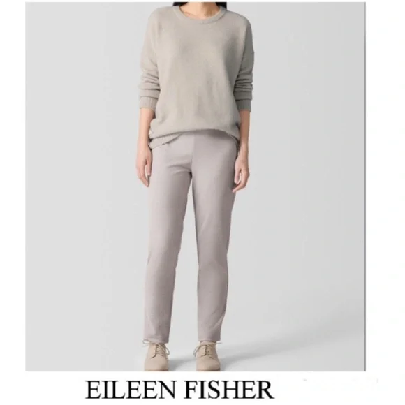 EILEEN FISHER Washable Flex Ponte Straight Ankle Length Pants Light Grey Sz L