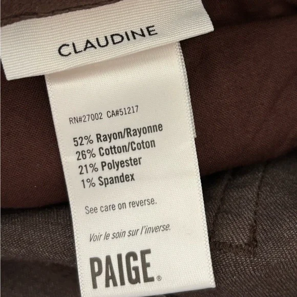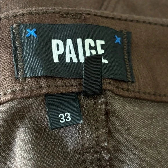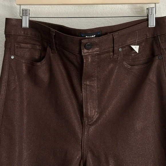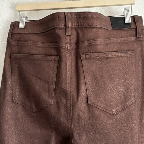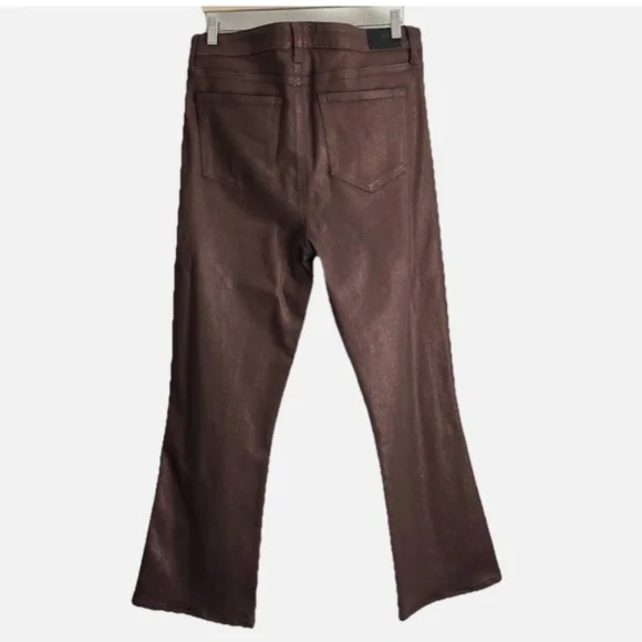 PAIGE Woman CLAUDINE Metallic High Rise Ankle Flare Coated Pants Size: 33New without tag in excellent condition. Never worn (NO FLAWS)Material: 52%Rayon26%Cotton21%Polyester1%SpandexColor: Bronze5 Pockets designButton with zip closureHand Measurement: Inseam:27.5’´Leg Opening:9.5’’Waist: 18’’High rise:12.5’’Come from smoking free home & pet free homeFast Shipper/Same Day/Next DayLet me know if you have any questionsThanks For Looking