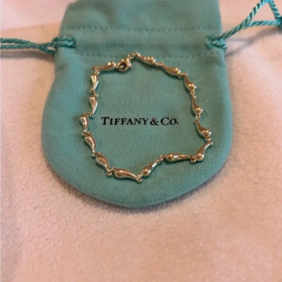 This exquisite Tiffany & Co. Elsa Peretti continuous teardrop bracelet from 2001 is in perfect condition! Length is 7.25 inches. Comes with pouch.