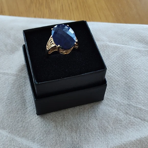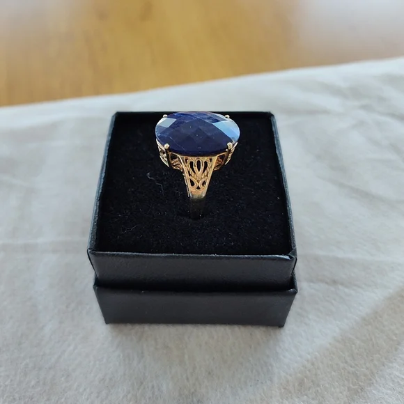 This stunning women´s ring features a 14mm x 10mm Lapis Lazuli gemstone set in a beautifully crafted 10K gold setting.This is a substantial piece of jewelry that makes a statement without being oversized.Stamped 10K.