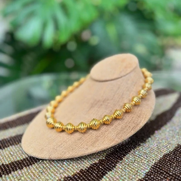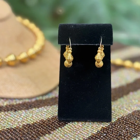 This exquisite vintage Persian inspired gold set includes a pair of mini beaded huggy hoops, a matching necklace and bracelet. This set was originally purchased at the...