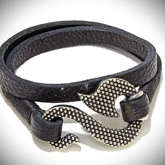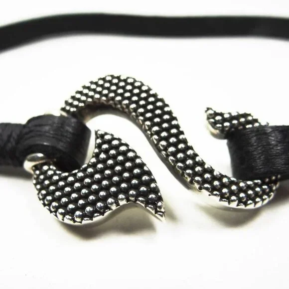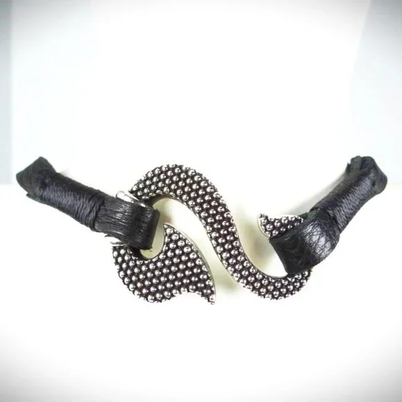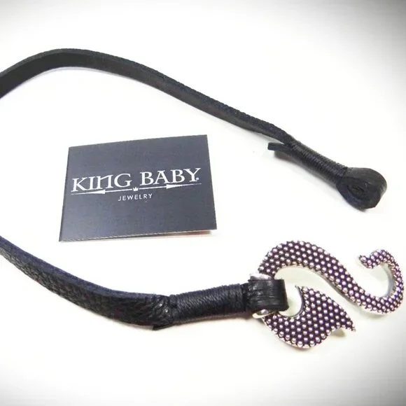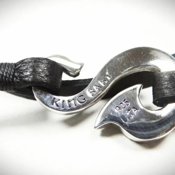 KING BABY Versatile Black Leather Sterling Silver Tribal Hook Bracelet/Necklace