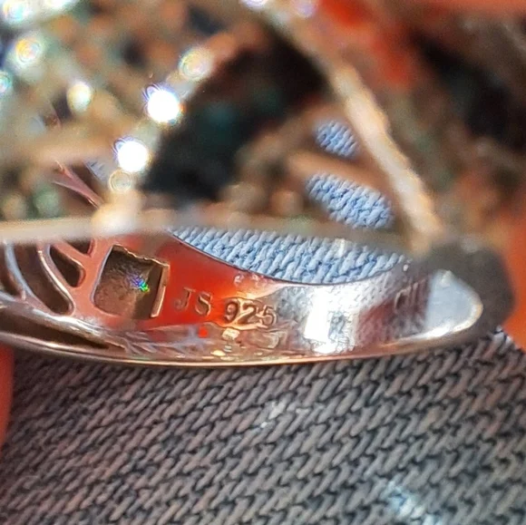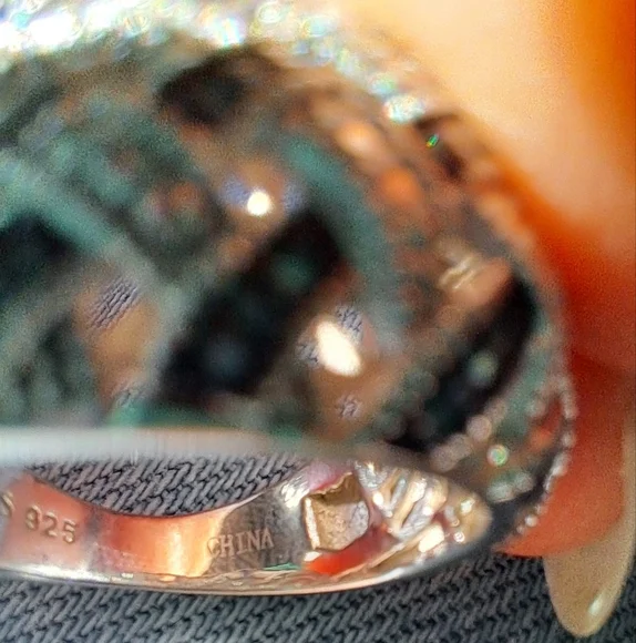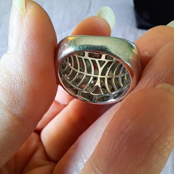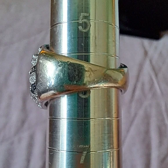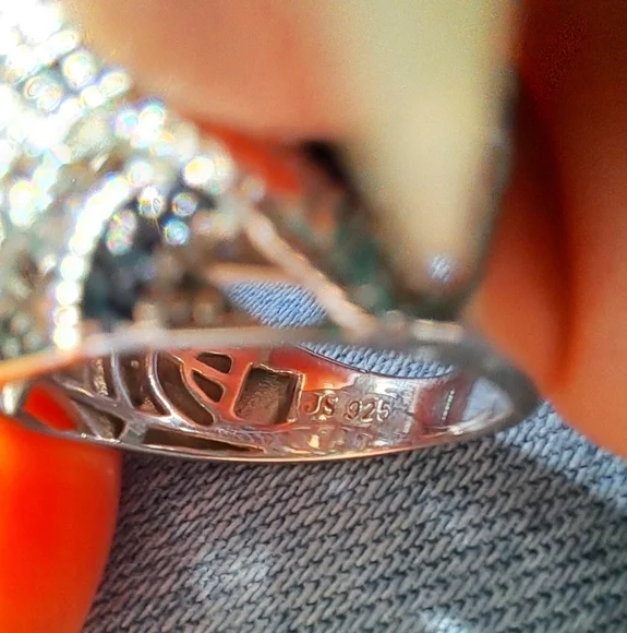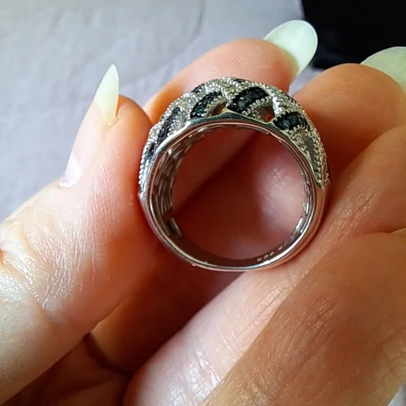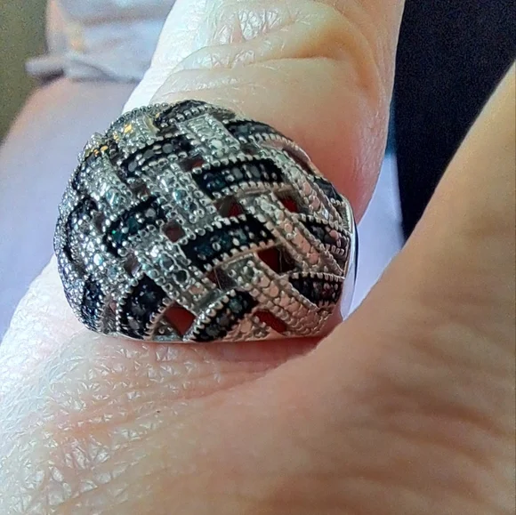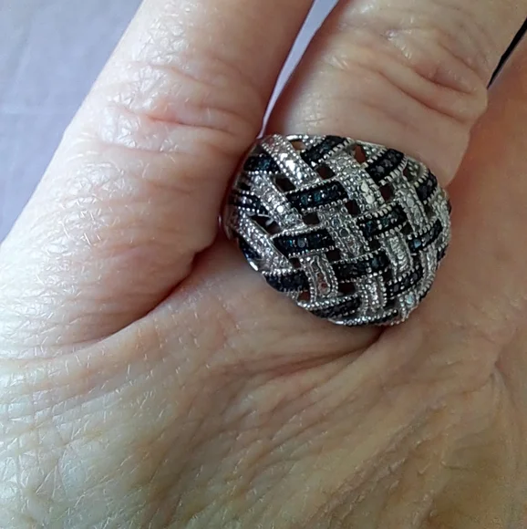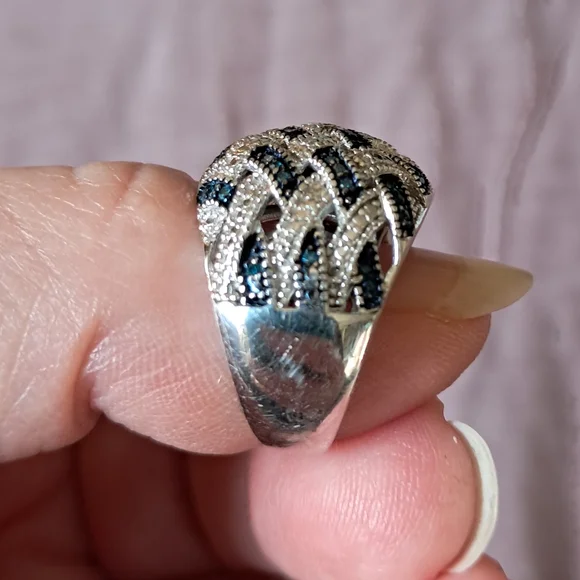 J. Stella Blue & White Diamond Pave Sterling Silver Basket Weave Ring Sz 6