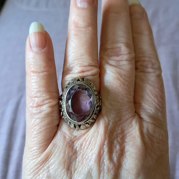 Antique Amethyst Sterling Silver Handmade Floral Cocktail Ring Size 6