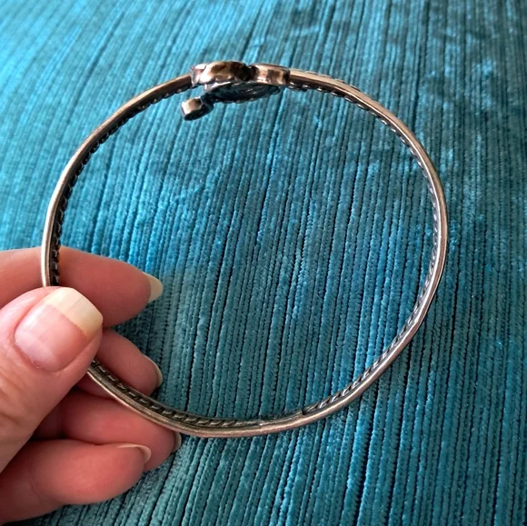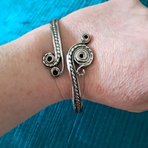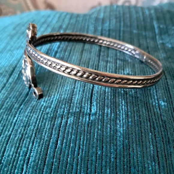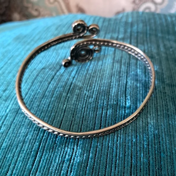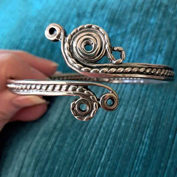Rare vintage Emery Holmes Hopi Sterling silver hand crafted bracelet hallmarked with the artisan initials and marked 925S for Sterling. 30grams. Width Approx: 5.8-30mm. Metal also tested using the Niton DXL-800 analyzer to verify content. Cleaned with warm soap and water to reveal the hallmarked but patina is still present. I do not polish with silver cleaners. Approx Diameter: 8"