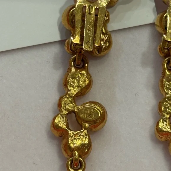 These exquisite Oscar de la Renta earrings feature a stunning gold filigree design that exudes elegance and sophistication. The drop style adds a touch of movement, making them...