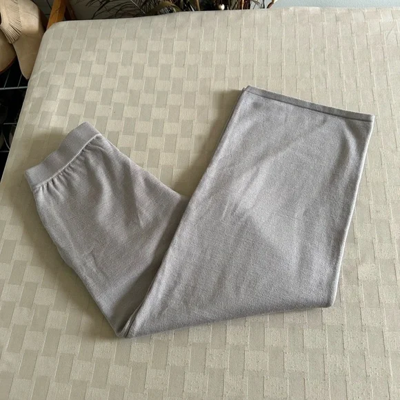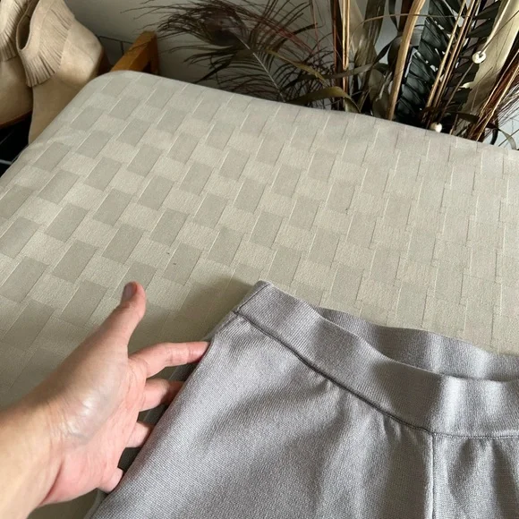 Side slip on pockets, high rise, substantial flowy fabric, wide elastic waistband Measurements and fabric comps in pictures In excellent preowned condition