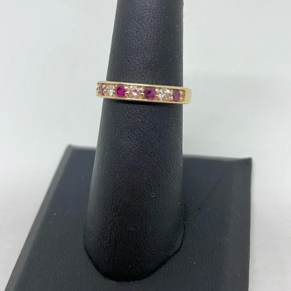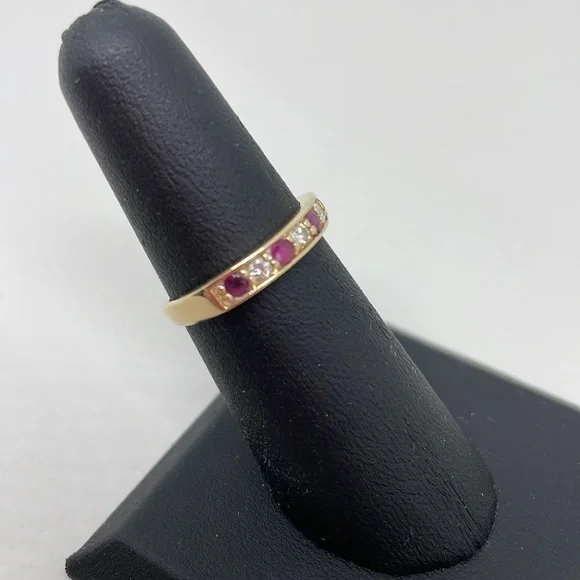 Vintage Women’s Natural Ruby and Diamond 14k Gold Channel Set Ring, Size 6.5