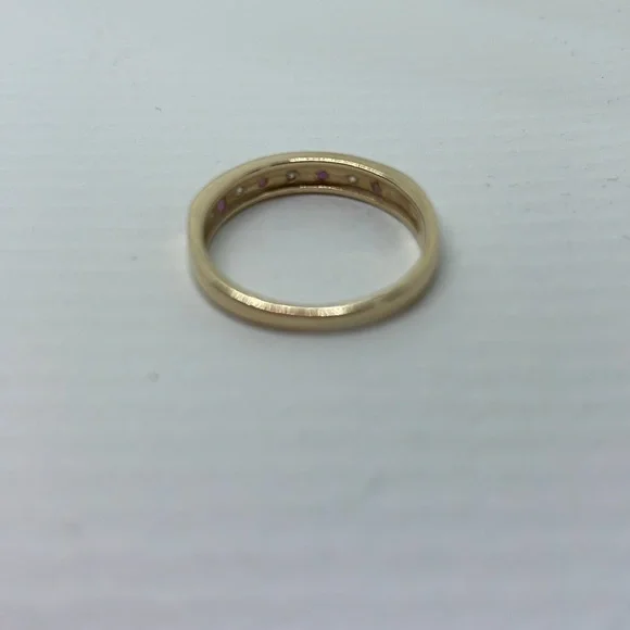 Beautiful vintage women´s natural ruby (NOT lab created) and diamond channel set ringSize: approx 6 1/214k gold, stamped on the inside (solid, not plated)Channel set diamonds and rubiesThis was my mother´s ring