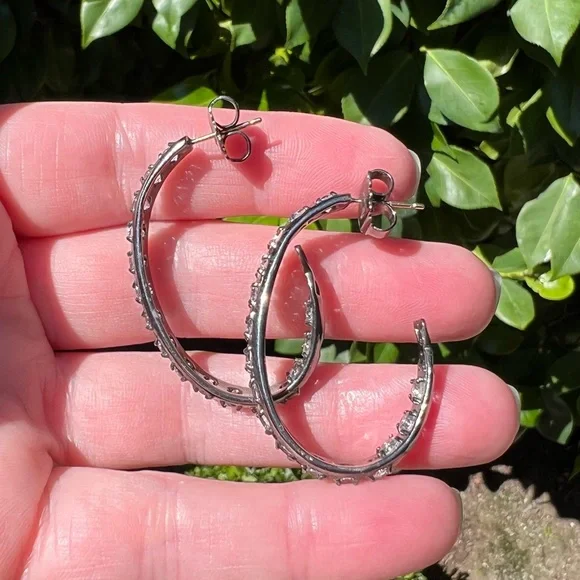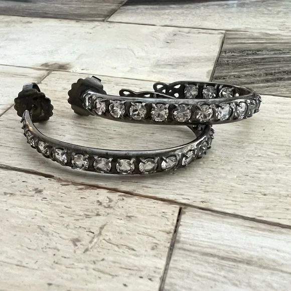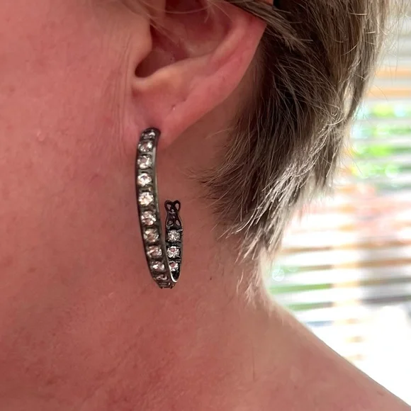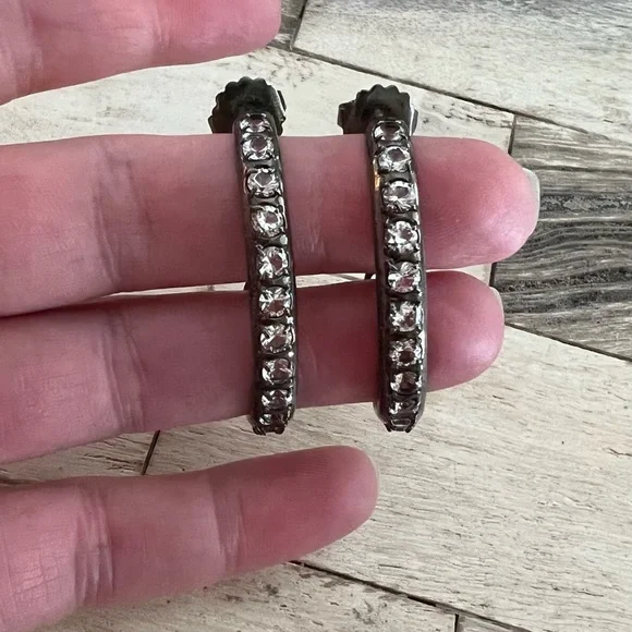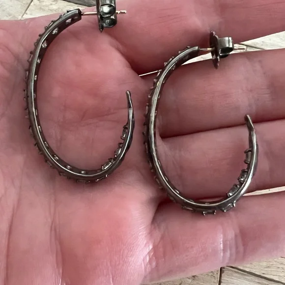 These elegant oxidized silver hoops feature rows of sparkling white topaz. I love the oval shape, which measures about 1.5 x 1”. Made by the talented designers, Alberian & Aulde.