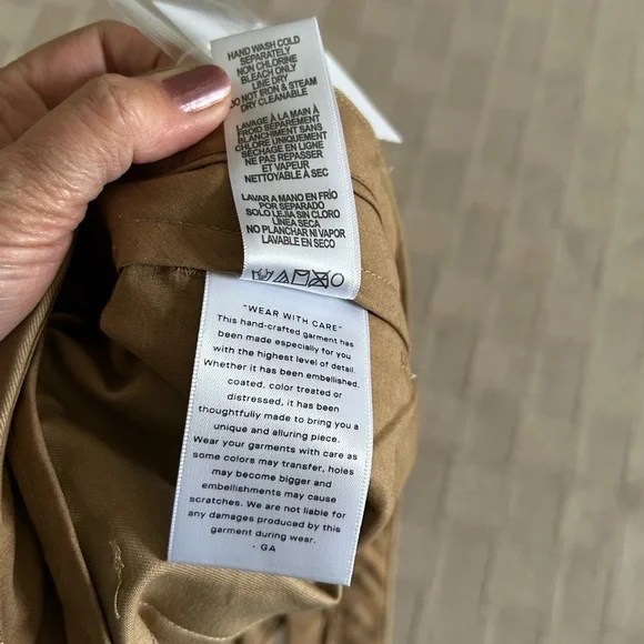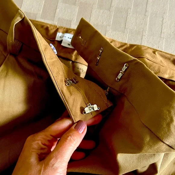 Measurements and fabric comps in pictures High waisted silhouette with pleated crisp pleats in stretch cotton blend fabric, front slant pockets, zip fly with hook and bar closure...