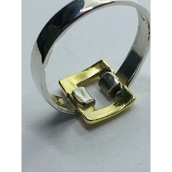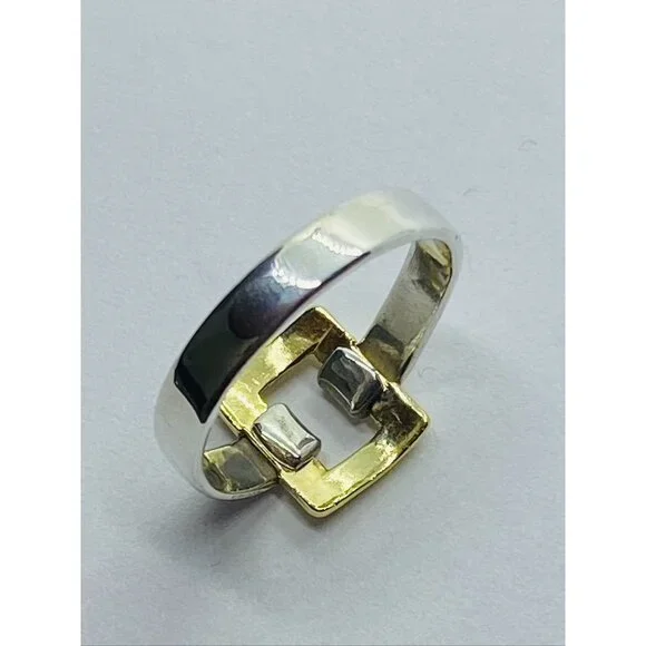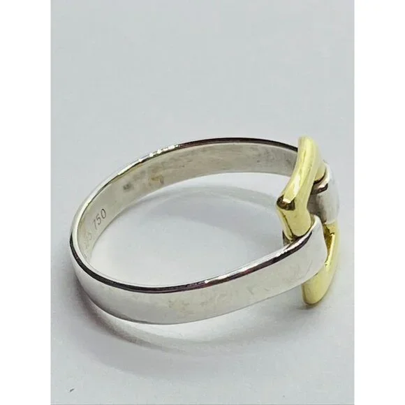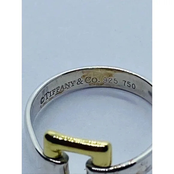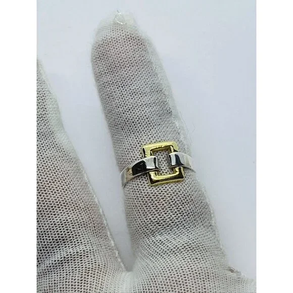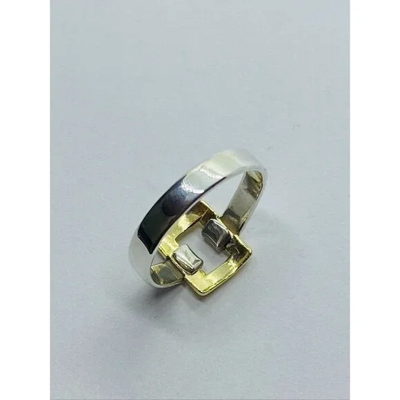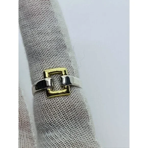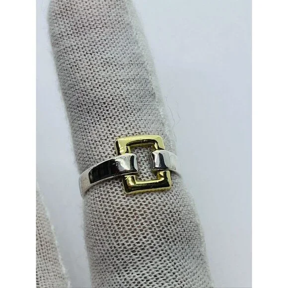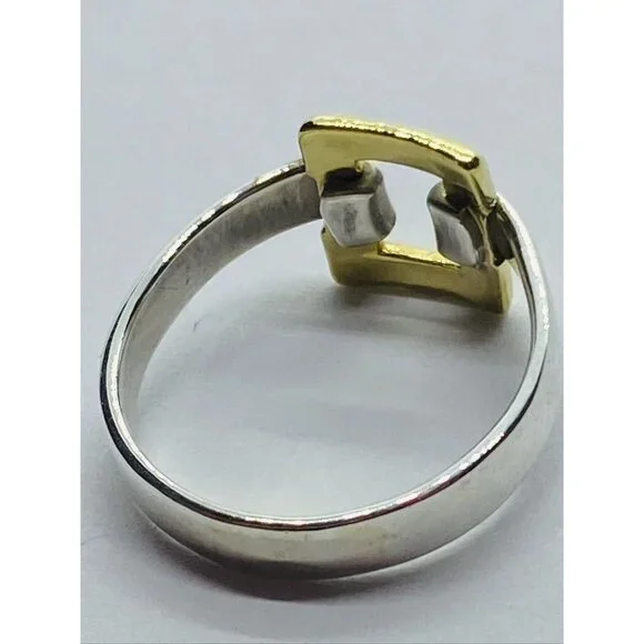 Tiffany & Co. Sterling Silver 18k Yellow Gold Size 6.5 Square Buckle Band Ring