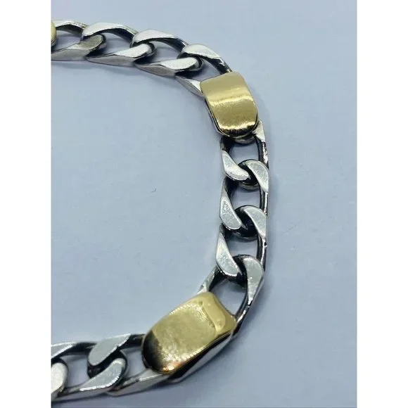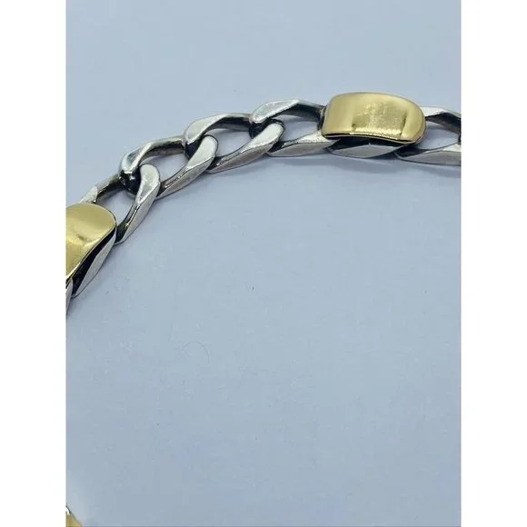 Tiffany & Co. 18k Gold Sterling Silver 5mm Wide Curb Link Chain Bracelet 7 3/8"