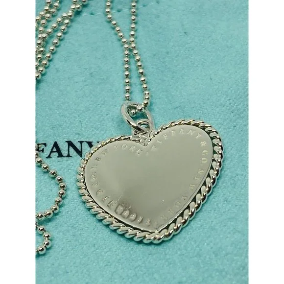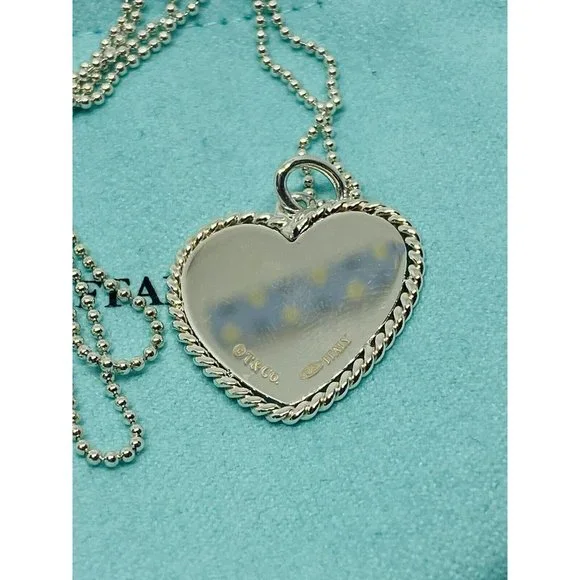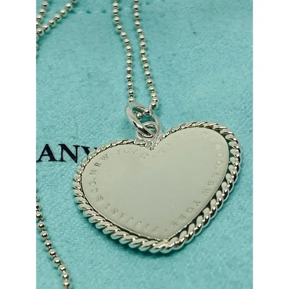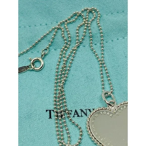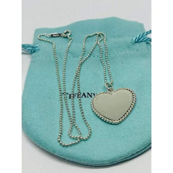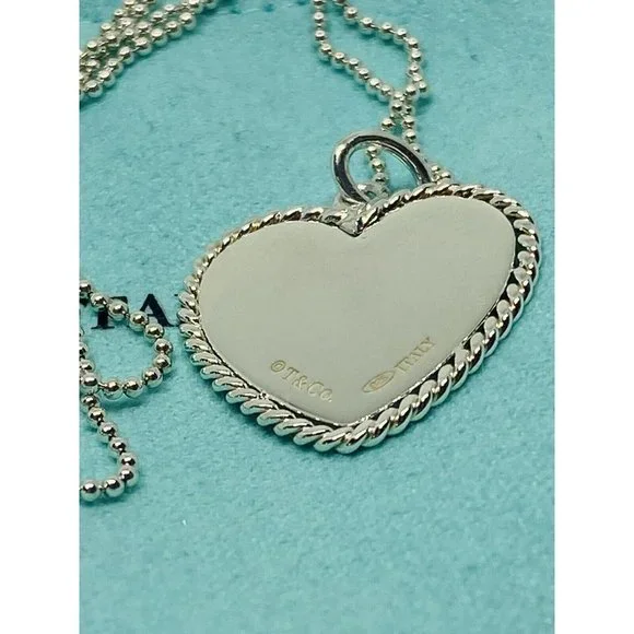 Tiffany & Co. RARE NY Twisted Heart Italy Sterling Silver Pendant Necklace BEAD. Heart measures 23x23MMBeaded Tiffany necklace 18” long Chain is 1mm wide Comes with pouch Overall in good condition. Please see all pictures.