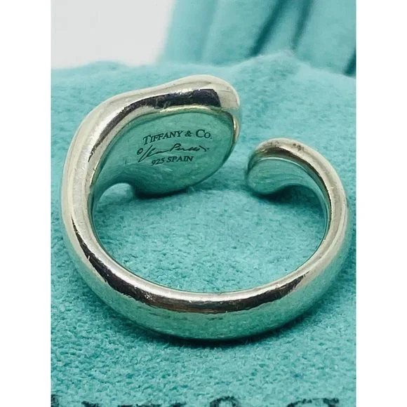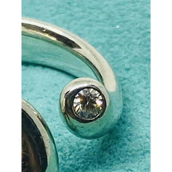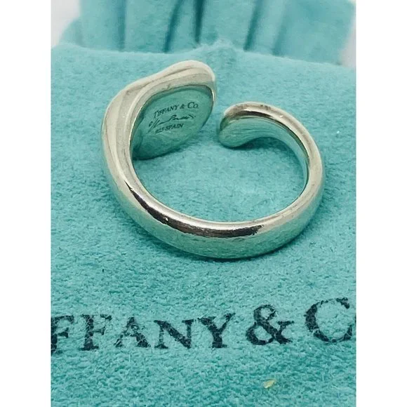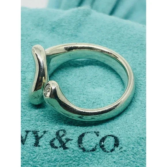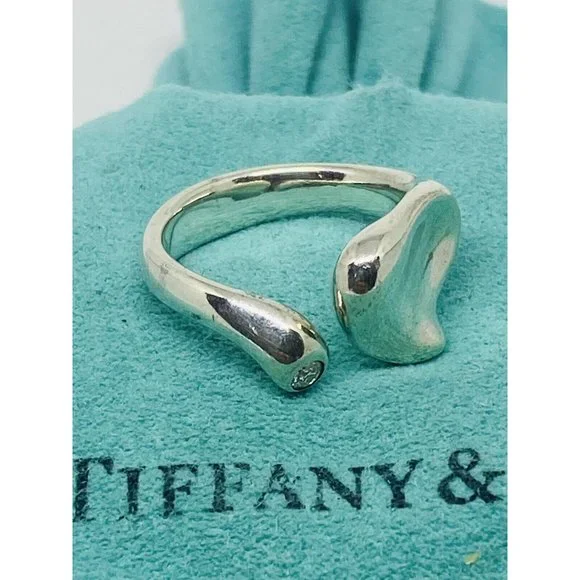 Tiffany & Co. Elsa Peretti Sterling Silver Full Heart Diamond Ring, Size 6.0. Tiffany & Co. Elsa Peretti® Full Heart Ring with a Diamond in Sterling SilverAn exciting interpretation of Peretti´s famous heart design. Ring in sterling silver with a round brilliant diamond. Original designs copyrighted by Elsa Peretti. Made in SpainBrand: Tiffany & Co.Collection: Elsa Peretti®Metal: 925 Sterling SilverCarat Weight: 0.05 CaratTotal Weight: 6.8 grams Ring Size: 6.0Comes with box no pouch