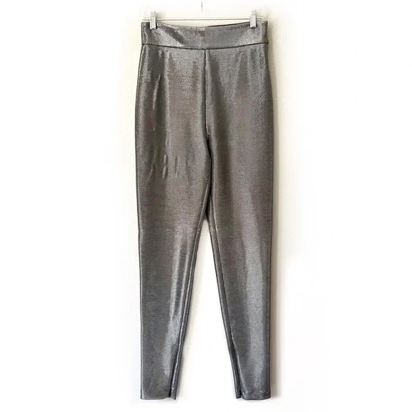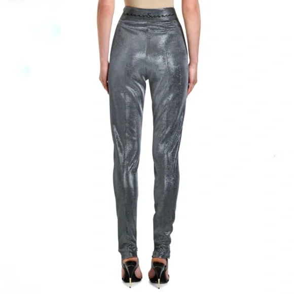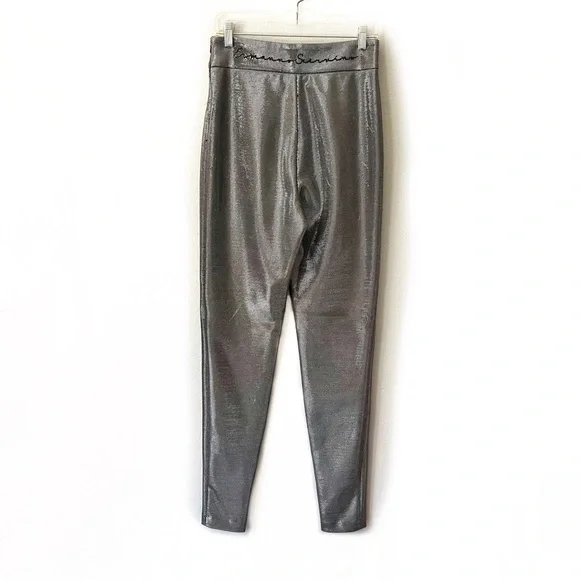 ERMANNO SCERVINO SILVER WOVEN METALLIC LEGGINGS HIGH WAISTED SPAR…
