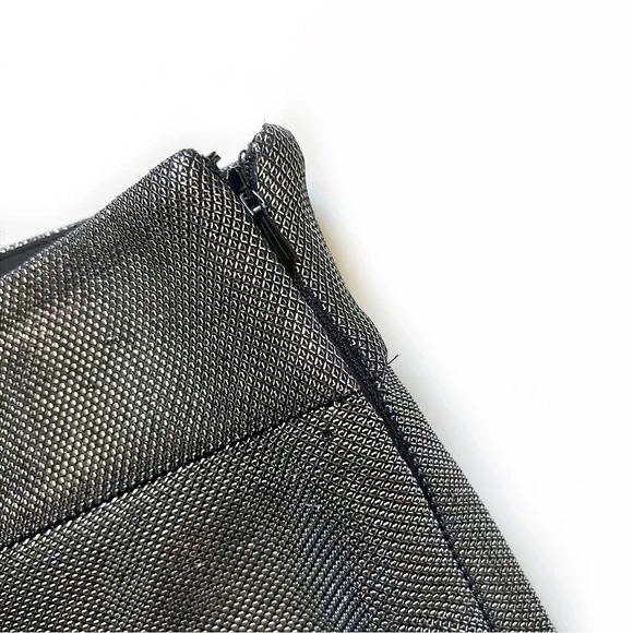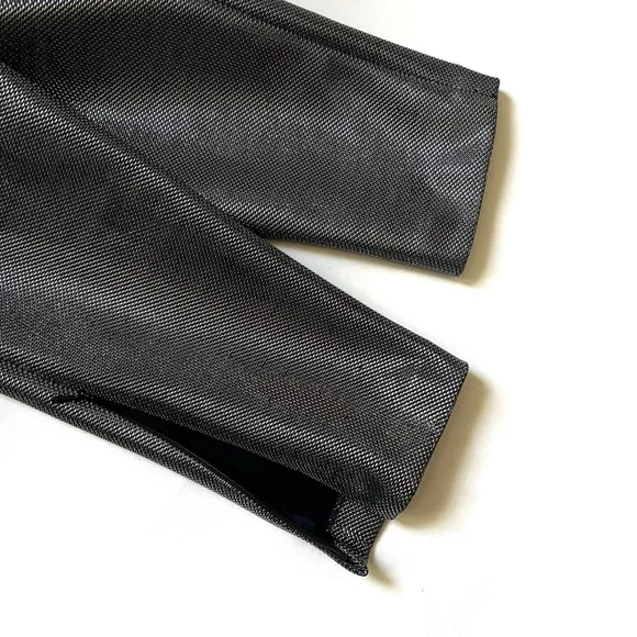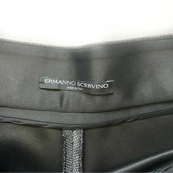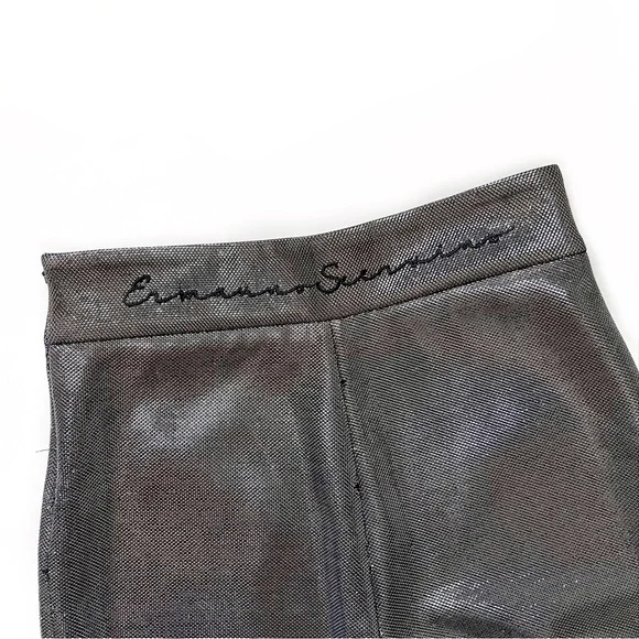 High waisted glittery sparkly sliver Ermanno Scervino woven metallic leggings are in good condition. Some places of wear, usually by seams, shown in photos. Sold at Neiman Marcus- No longer available Woven metallic pantsHigh rise, high waistLogo embroidered back waistbandBanded waistSide zipperZippers at anklesMade in ItalyFitted through skinny legsFull length StretchyPewter silver metallic sparkleLooks like liquid silverMore sparkly than the photos showApproximate measurements flatW 14.25”R 13.5”I 33”Size 42, equal to US size 6Wash gentle cycle, hang drySMOKE FREE* Some of the sparkles are worn off at the seams, most at the inner thigh. There are one or two small spots on the outer seam, and front and back of pants. They are very small areas and are not very noticeable. Perfect for Taylor Swift and her Eras tour, or for anywhere you want to stand out a bit. Silver sparkle glitter Ermanno Scervino woven designer metallic leggings pants