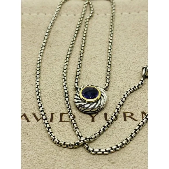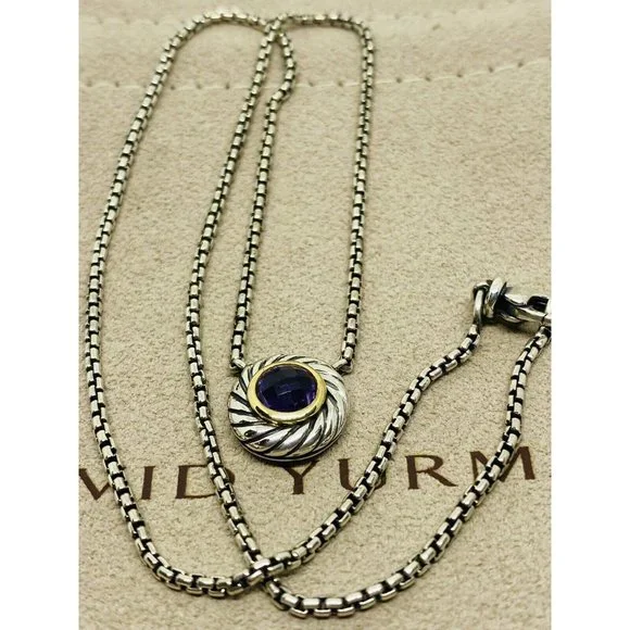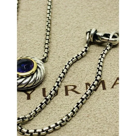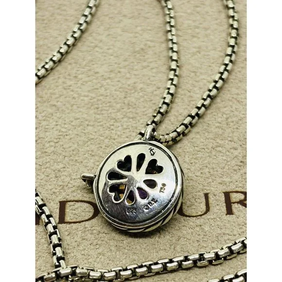 David Yurman Sterling Silver Amethyst Cookie Necklace 16.5”