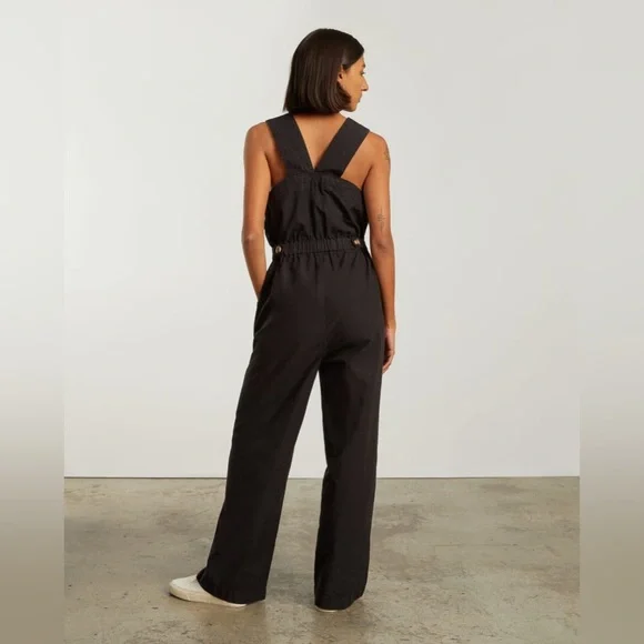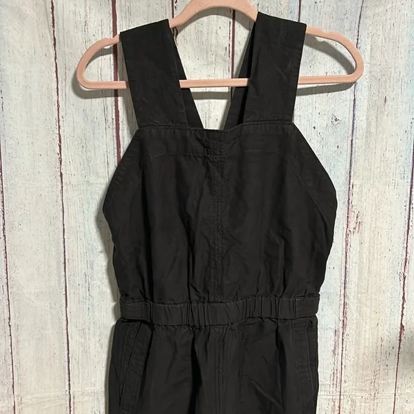 NWT Everlane The Fatigue Apron Jumpsuit in black. Size 2. Jump into something comfy. The Fatigue Apron Jumpsuit is made of 94% organic cotton with a hint of linen for all-around comfort and maximum breathability.Pit to pit measures 17”