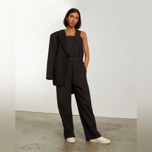 NWT Everlane The Fatigue Apron Jumpsuit in black. Size 2. Jump into something comfy. The Fatigue Apron Jumpsuit is made of 94% organic cotton with a hint of linen for all-around...