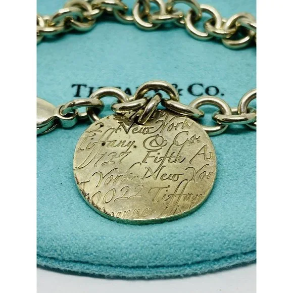 Tiffany & Co. Silver Notes Wavy Round Circle Pendant Bracelet 7.5” Pouch. Tiffany & Co. Silver Notes Wavy Round Circle Pendant 7.5" BraceletHallmark: Tiffany & Co. 925Comes with...
