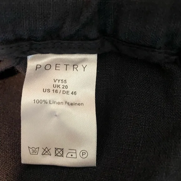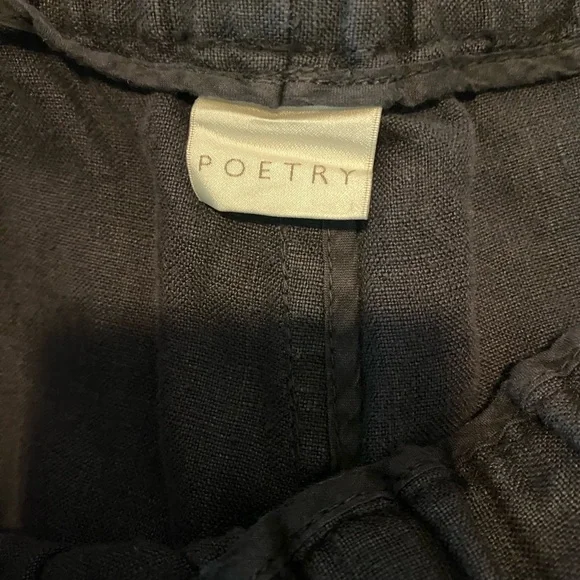 Poetry 100% Linen Black Pull-On Cropped Summer Pants w/Elastic Waist Size 16