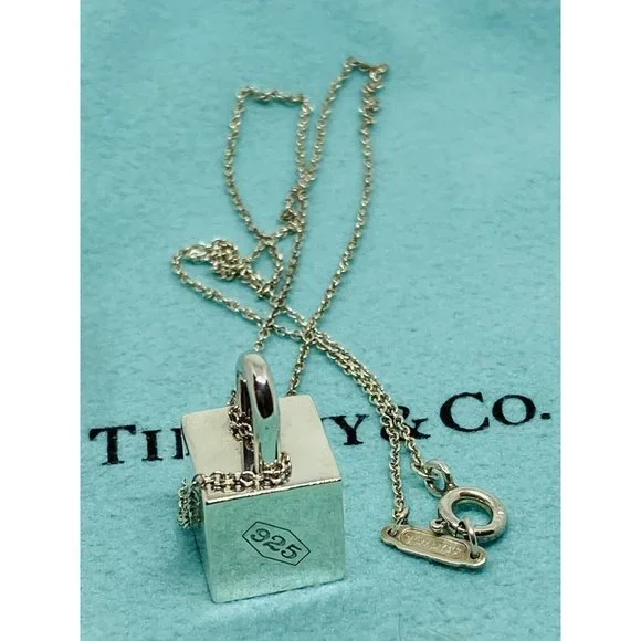 Tiffany & Co Silver 1837 Square Cube Padlock Pendant Charm Necklace 16” Rare