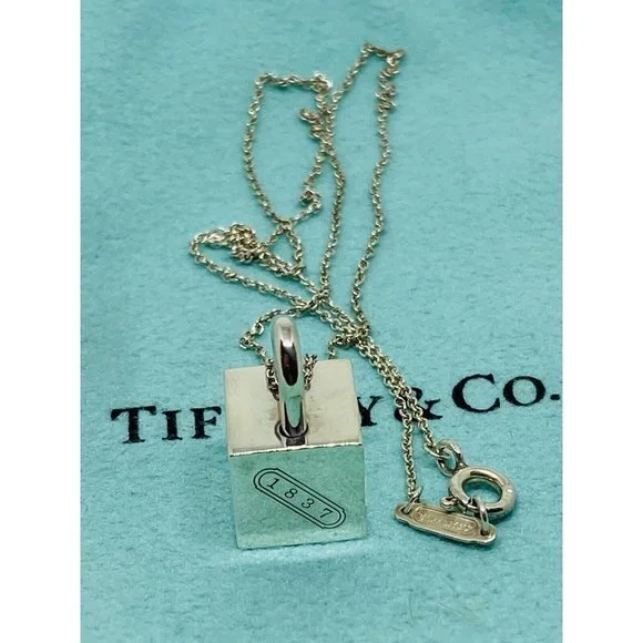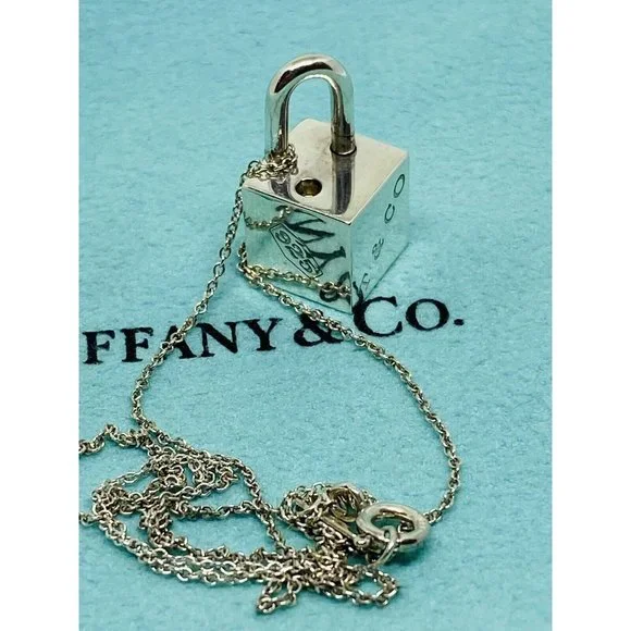 Tiffany & Co Silver 1837 Square Cube Padlock Pendant Charm Necklace 16” Rare. Tiffany & Co. Sterling Silver 1837 Cube Padlock pendant that is perfect for any occasion. The...