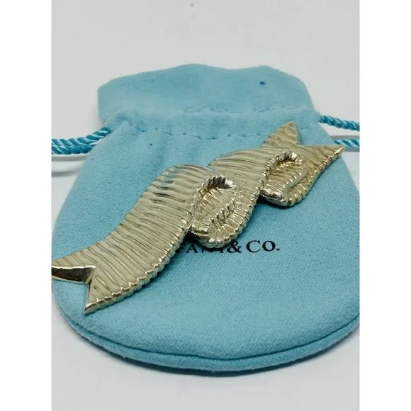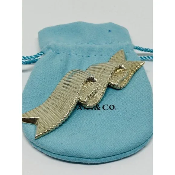 Tiffany & Co Designer Angela Cummings Ribbon Brooch Sterling Pin Vintage HUGE 3”