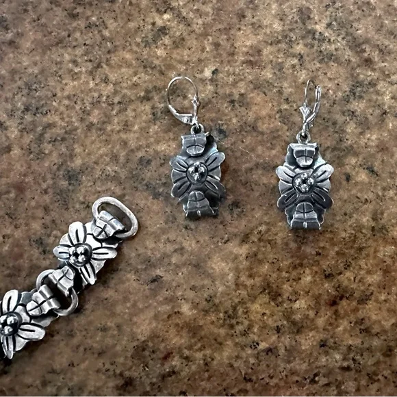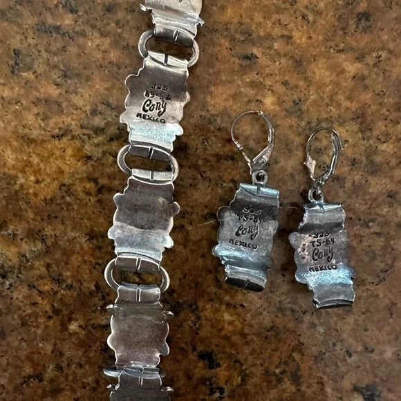 Victoria Cony Gorgeous Vintage Rare Mexican silver bracelet & matching earrings!