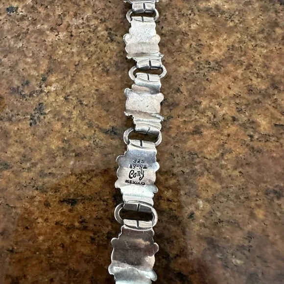 Vintage beautiful Designer Victoria Cony sterling silver 7 “ bracelet and matching lever back earrings. Earrings are tarnished so look darker but just need to be polished. Bracelet is a panel link. Made in 1935-1950’s, made in Taxco Mexico. Earrings are approximately 1 1/2 inches top to bottom with lever back and width of link is approximately 1/2 inch. made between the 1930’s and 1950’s. Rare vintage set. Excellent Condition!