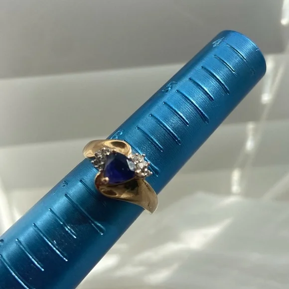 Beautiful 14K Gold, Iolite & Diamond Ring Size 6.25