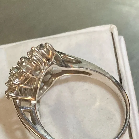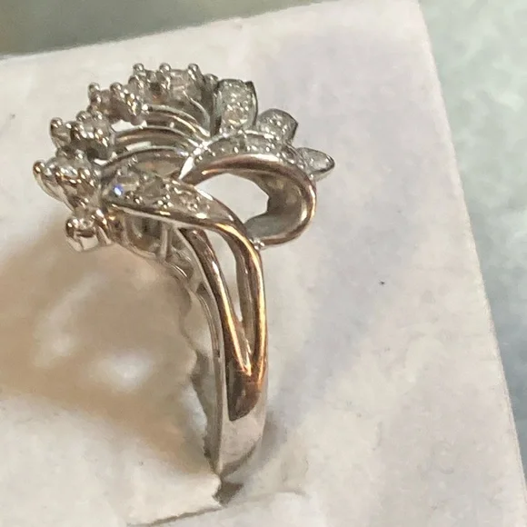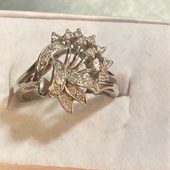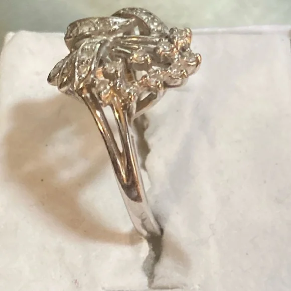 This elegant 14k white gold floral ring adds a touch of sophistication to any outfit. Perfect for special occasions or everyday wear.