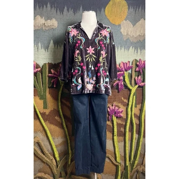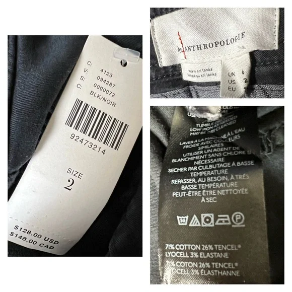 New With TagsSize 2These chic pants by Anthropologie are a faded black color.The utility pants have a jogger tapered style with an elastic ankle band.The cute pants have a button & zipper front closure.The fabric is 71% cotton, 26% tencel, & 3% elastane.The front pockets are the coolest with zippers inside to keep things secured.The joggers are paired with Johnny Was Amarylla Velvet Blouse (XS), available for purchase separately in my store.Measurements Laying Flat:Length 36 1/4”Inseam 27”Waist 14 1/4”Hips 17 1/4”Rise 10”