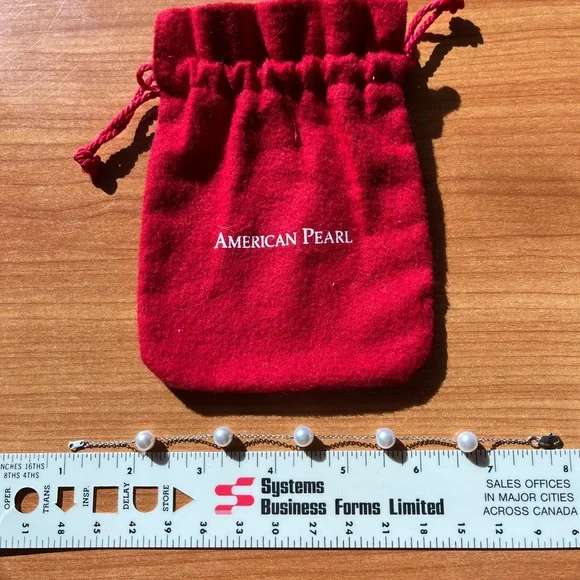 From American Pearl Co.18k white gold Tiffany style chain with lobster clasp.7mm white cultured pearls tin cup bracelet. In perfect condition.