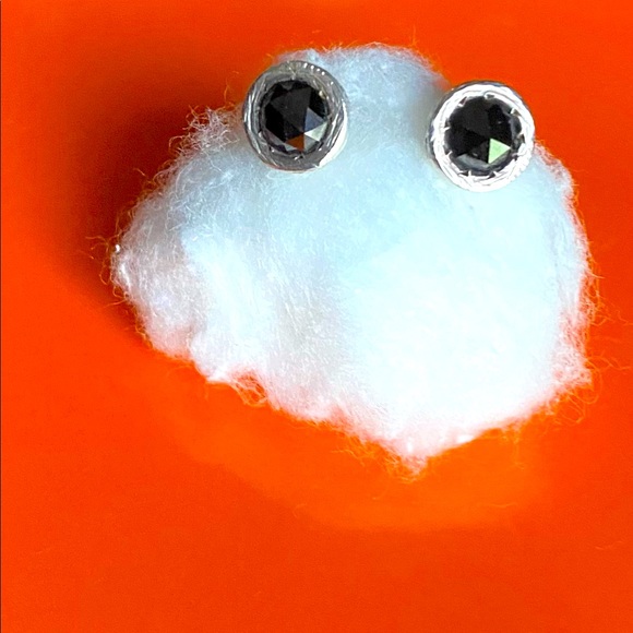 Gorgeous, unique, simple, elegant, stunning black diamond earrings in brushed sterling silver bezel setting with secure screw back posts. Bespoke made by jeweler Tracy Matthews.