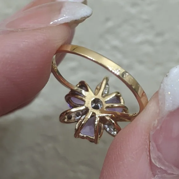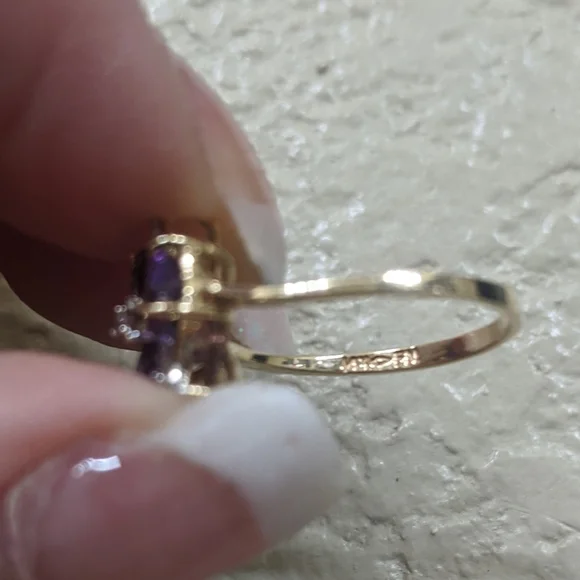 Estate Natural Amethyst and Diamond Ring in Solid 14k Gold.Size 5.5
